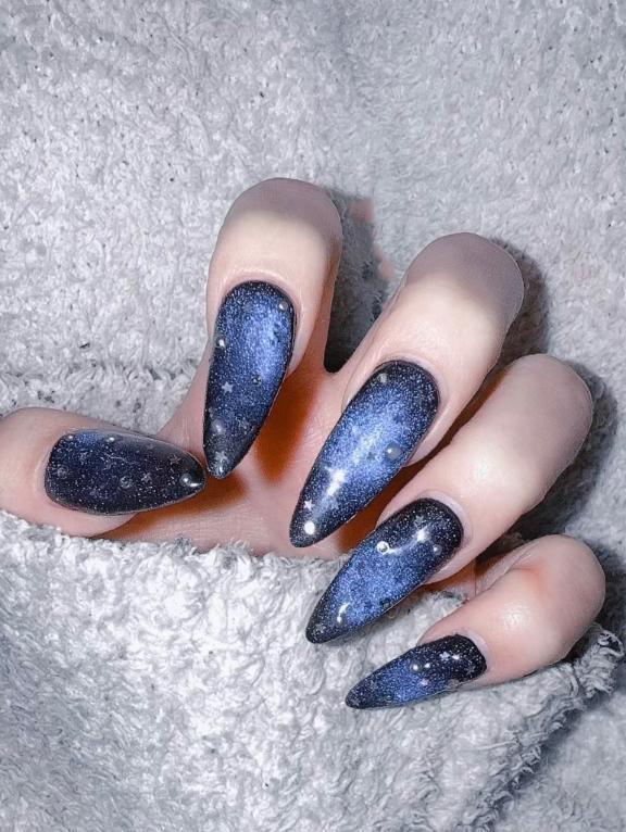 ふと新しいネイルぱしゃり📸冬の寒い夜空の色にしたくてネイ…
